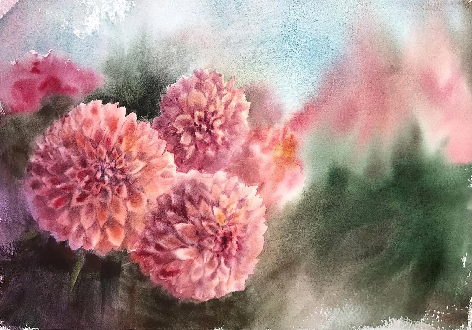 In this lesson, we will paint a watercolour landscape featuring lush green fields in the foreground and misty mountains in the distance. The contrast between the bright grass and the soft haze will create a sense of space and freshness, as if there were a light breeze blowing.