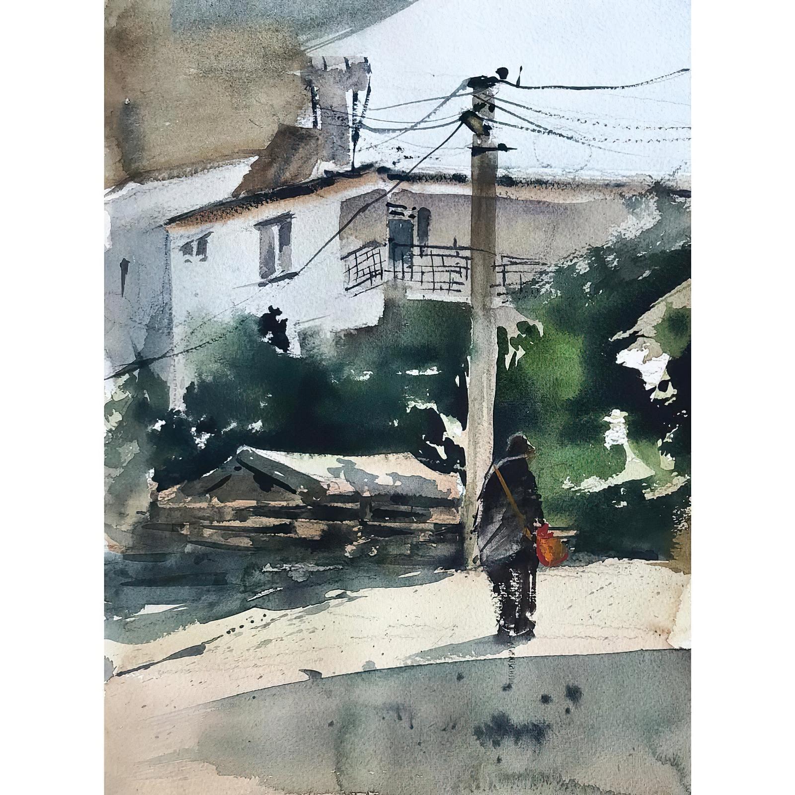 In this lesson, we will paint a cosy market street with bold shadows and soft light, making a red figure the focal point. Learn how to simplify shapes and capture the mood through confident brushwork.
